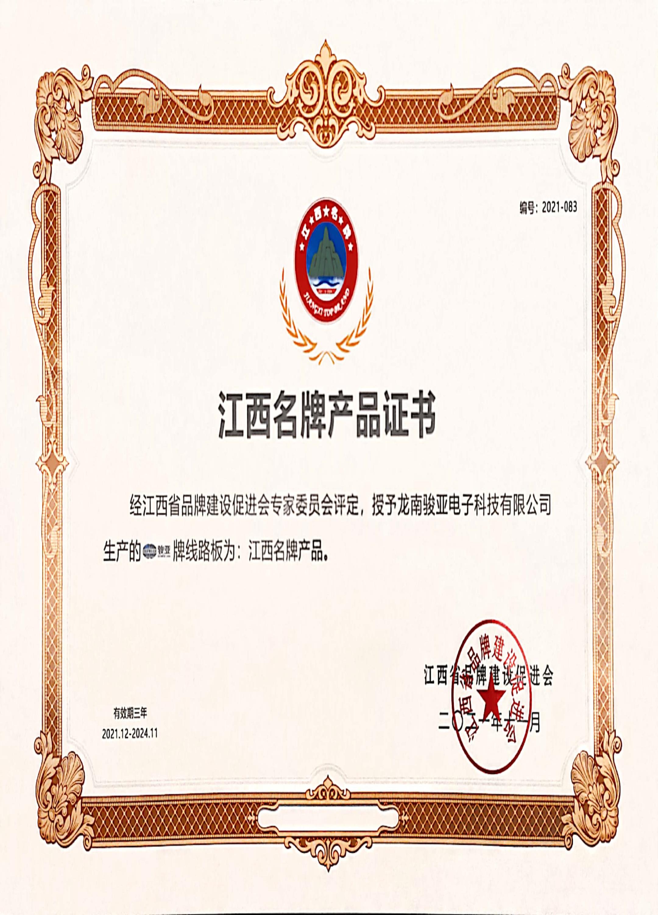 1月9日,由江西省品牌建设促进会主办的2021江西名牌产品发布会在南昌举办,广东尊龙凯时全资子公司龙南尊龙凯时电子生产的“尊龙凯时”牌线路板被认定为“2021江西名牌产品”。